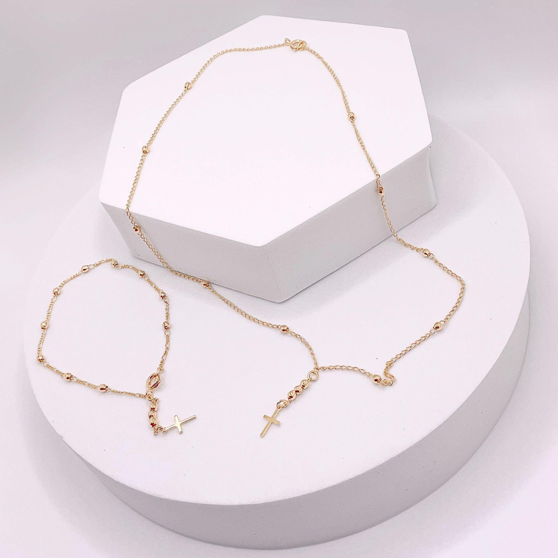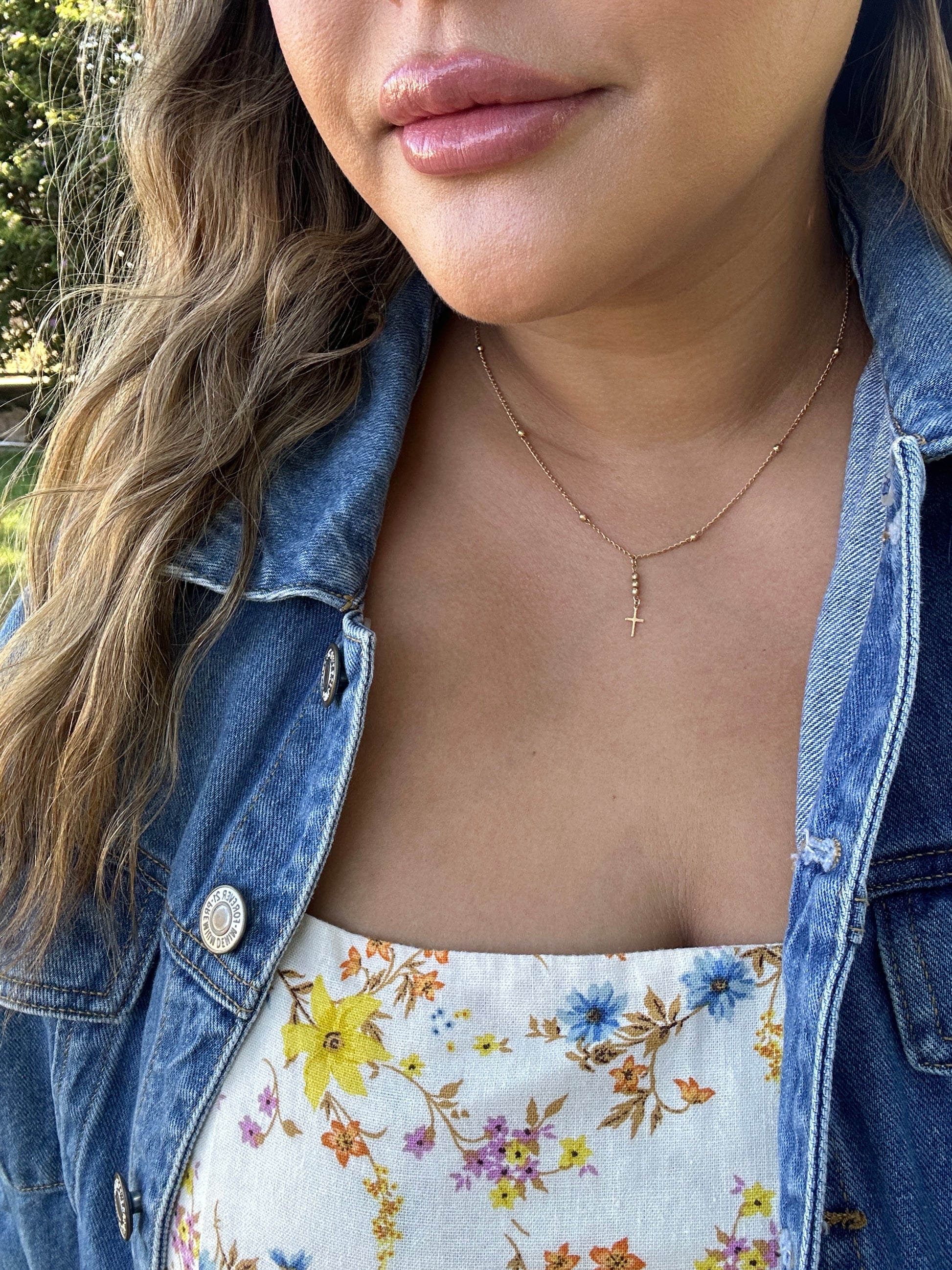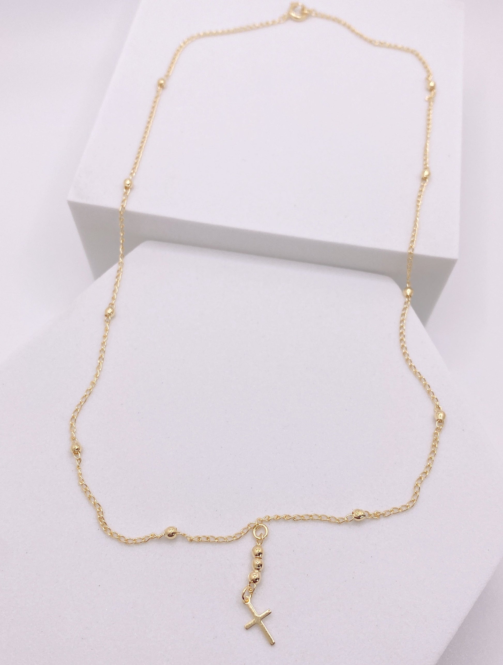 A gorgeous satellite chain necklace that drops down to a delicate cross charm. The way this cross lays against your chest will add the perfect touch to any outfit. Our cross necklace is perfect to dress down or up as its chain is made flawlessly. Looks great on adults, teens, and kids.