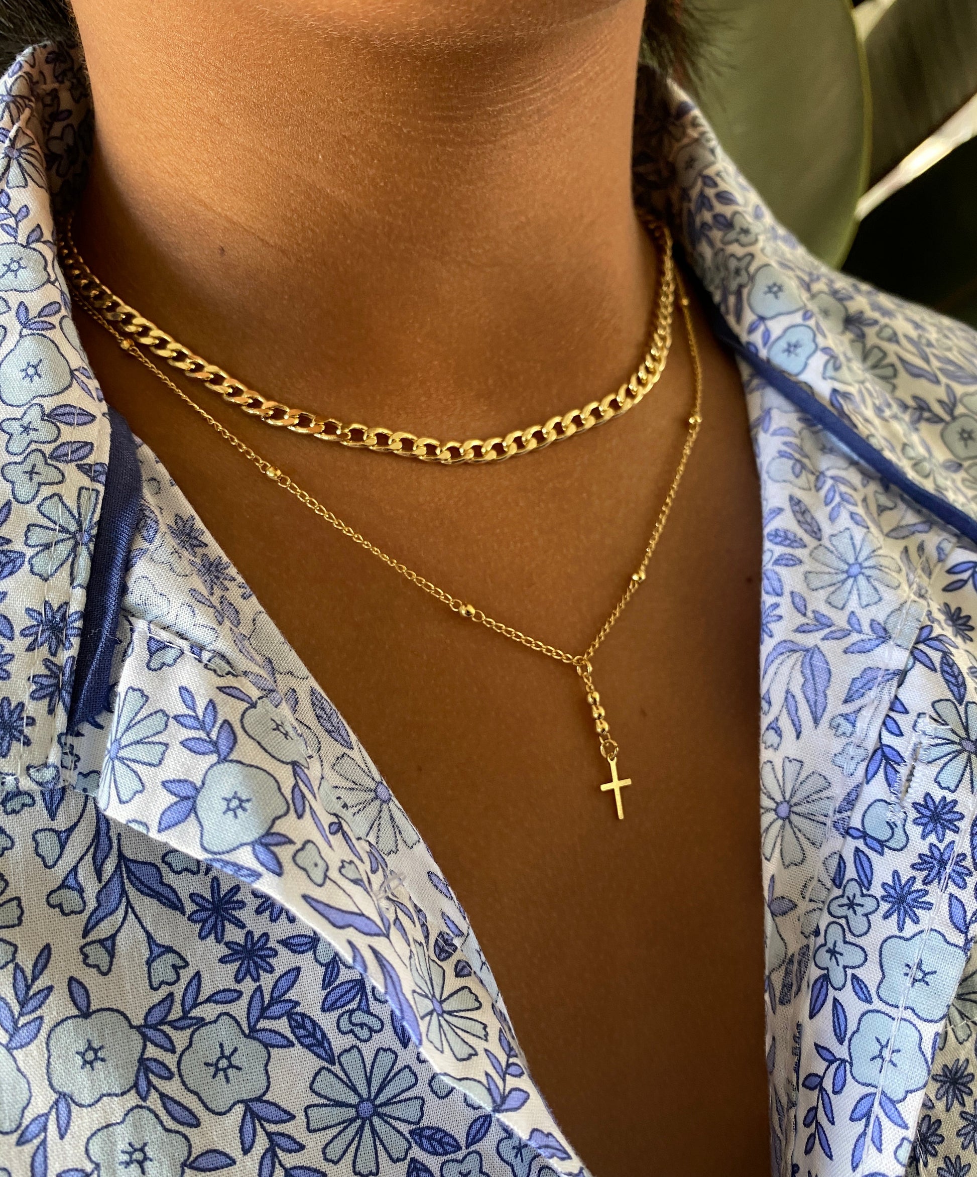 Style Tip: Add on our Satellite Chain Necklace for a layering effect and pair with our Cross Bracelet to create a matching set. Want to create a bold layer? Pair it up with our Cuban Chain necklace (pictured).