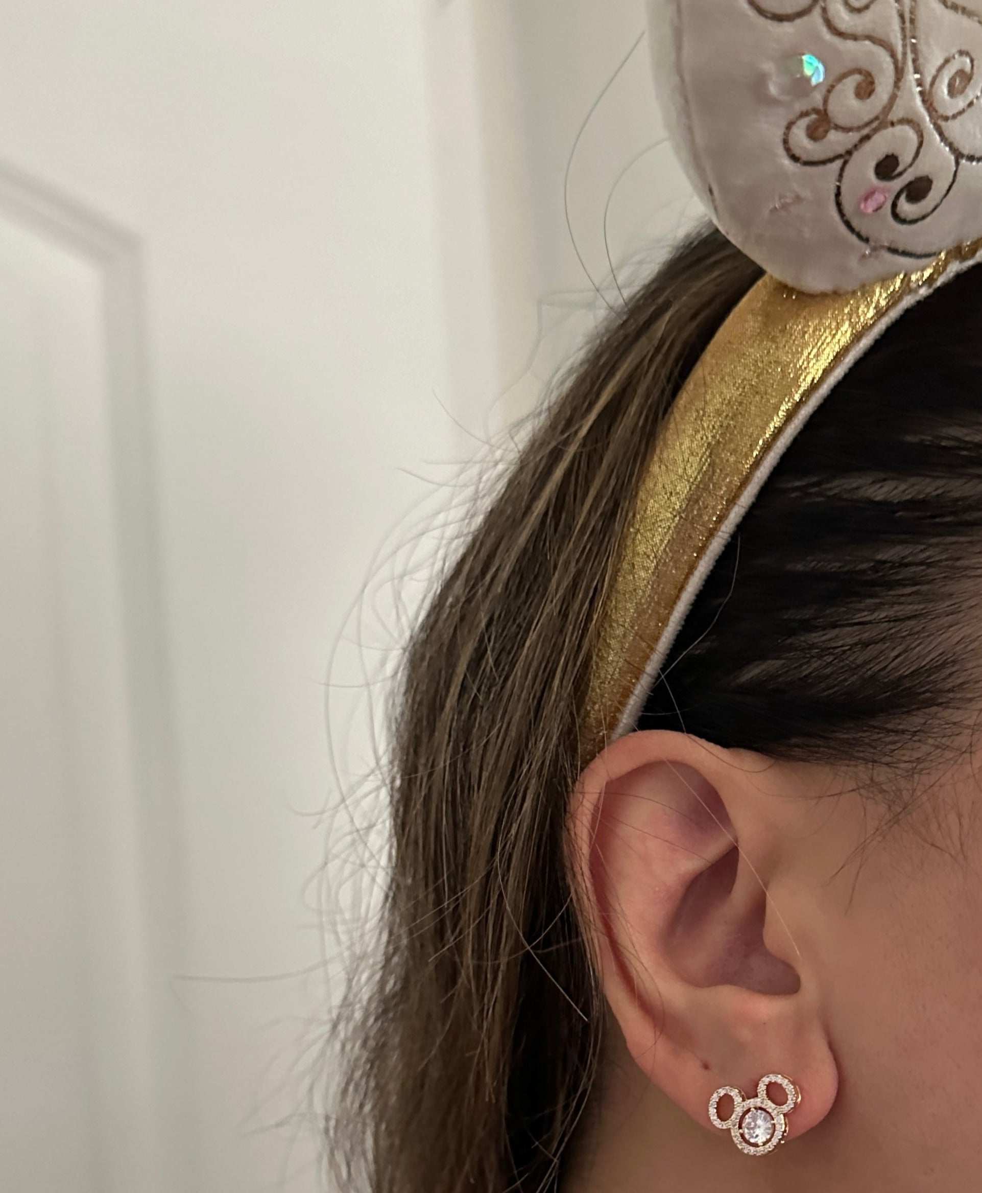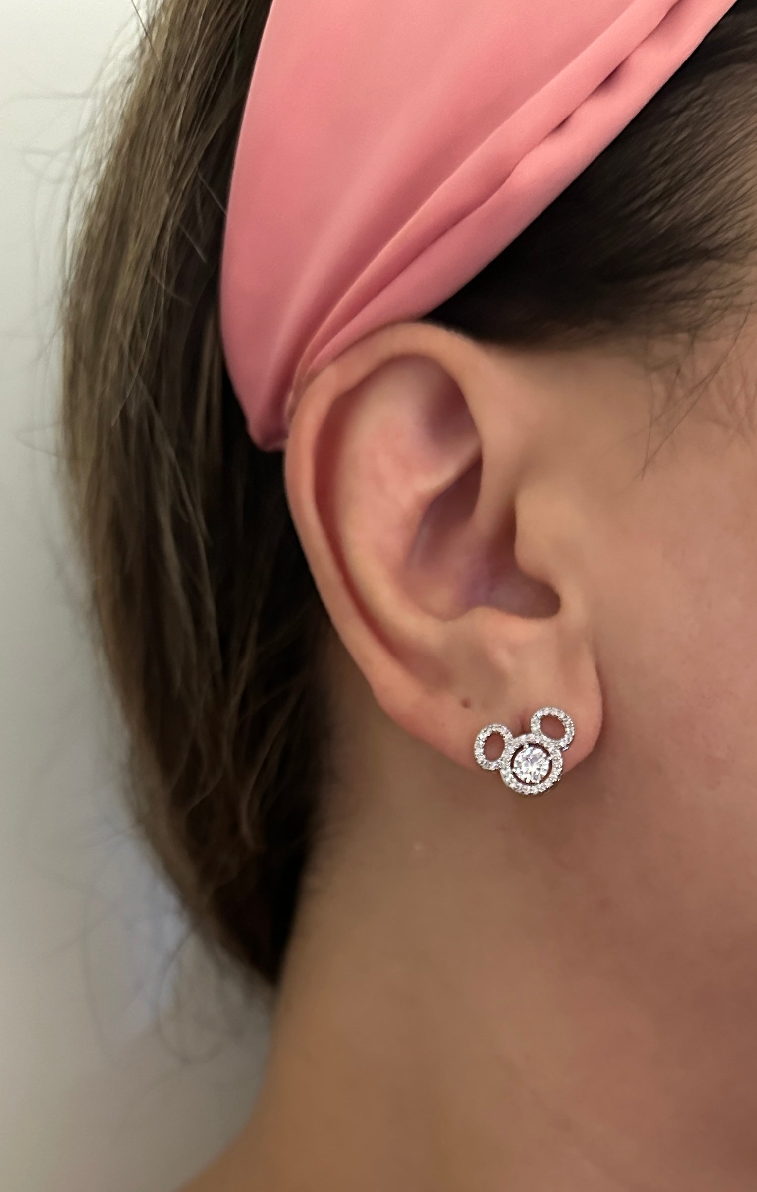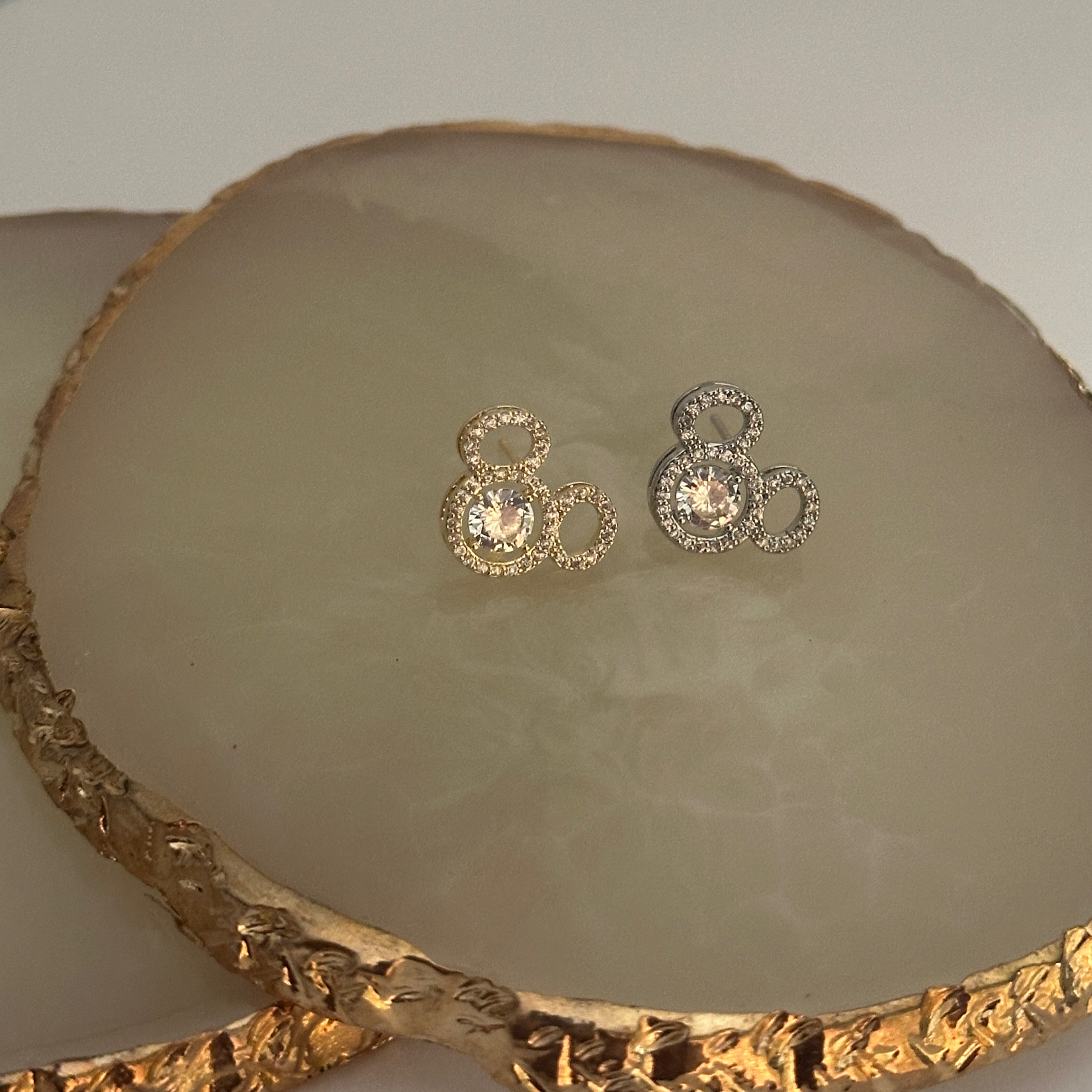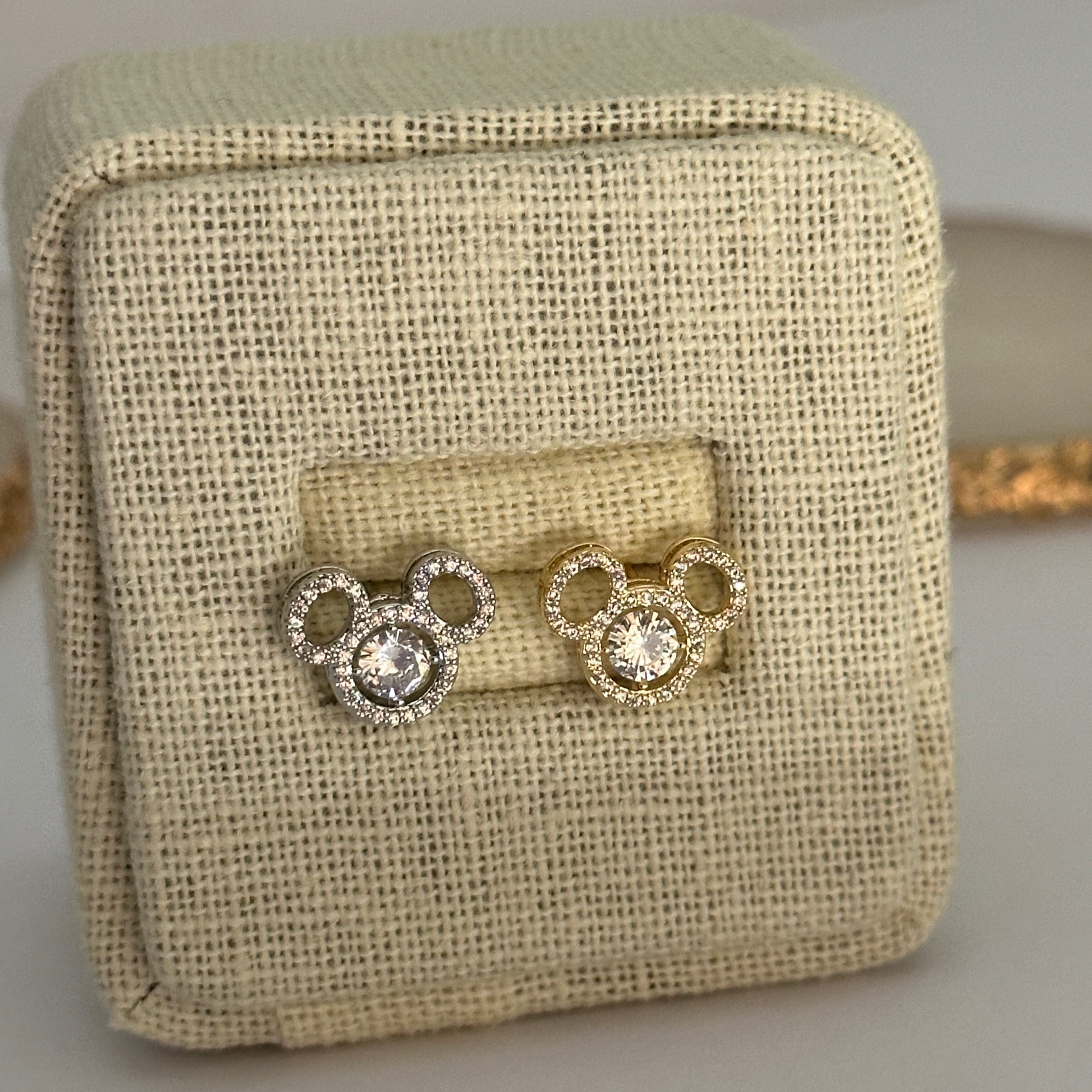 Unleash your inner Disney with our Fantasy Mouse Stud! Adorned with a large cubic zirconia and multiple smaller zirconias, this stud is sure to catch eyes and sparkle from every angle. Available in both gold and silver, adding this playful accessory to your ear will bring a touch of magic to any outfit.
