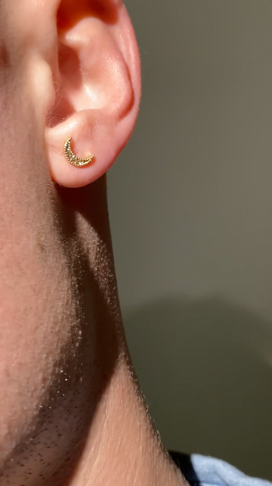 These crescent moon studs adds a unique sparkle to your ear. They are great to wear alone or for ear stacking. You will definitely get compliments on this earring!